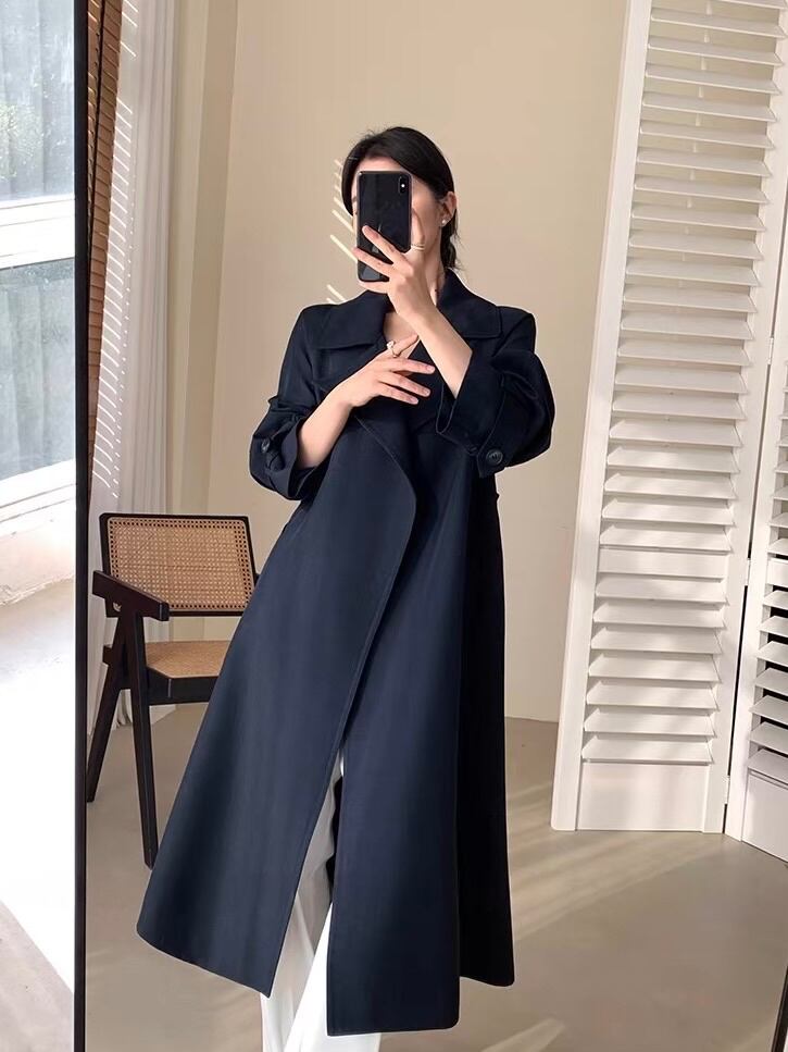 ベルトを結べばウエストラインを美しく強調し、開けて着用すればマニッシュでこなれた印象に。