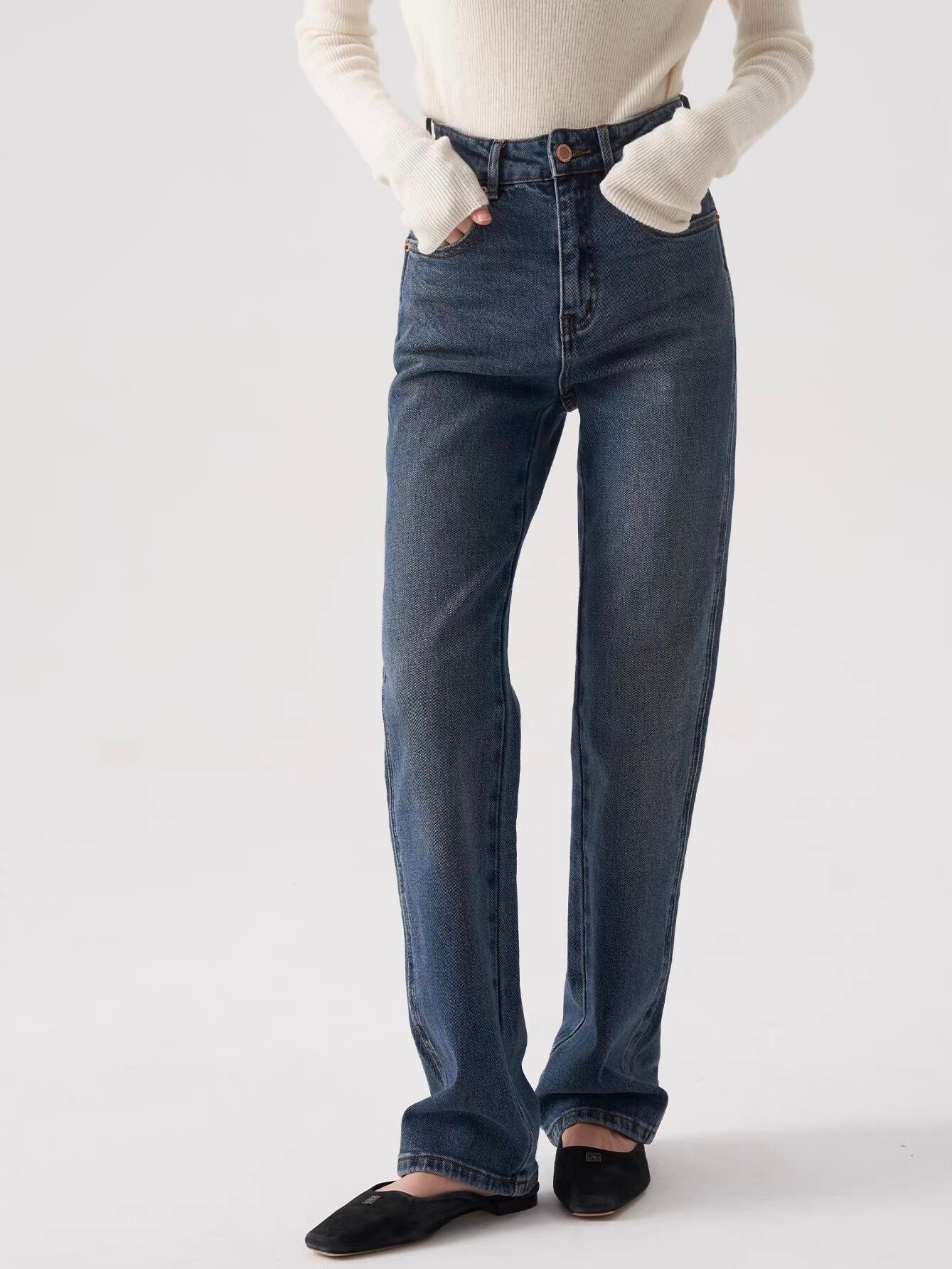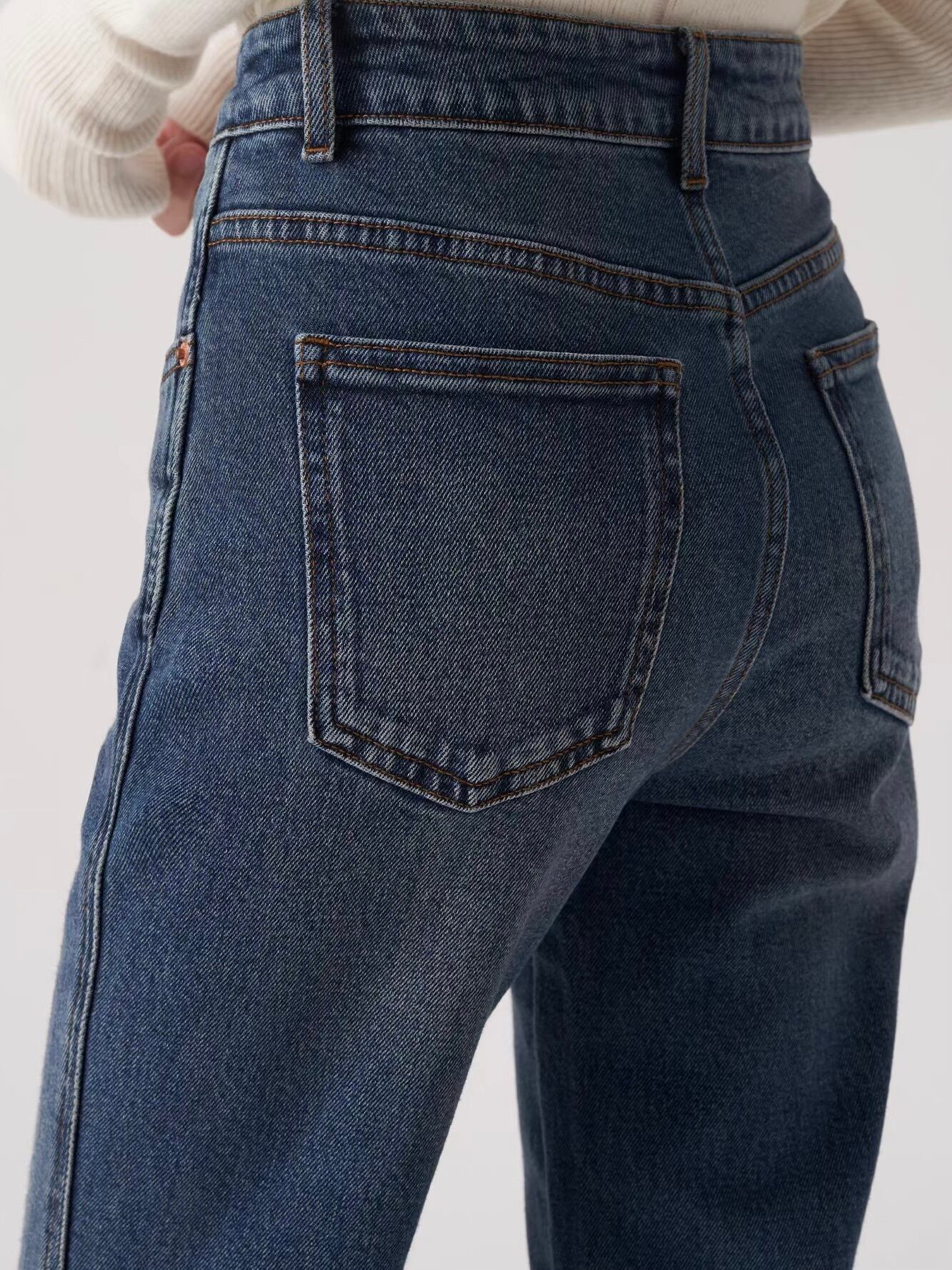 洗練されたダークインディゴが、大人のカジュアルを格上げするハイウエストデニムです。