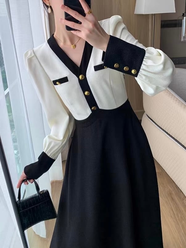 アイボリーとブラックの美しいバイカラーが、上品で知的な印象を演出。