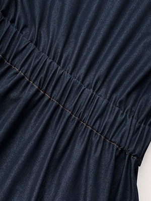クラシカルな魅力を纏う、ゴールドボタンデザインワンピース ゴールドのボタンと立体感のあるステッチがアクセントになった、洗練された大人のデニムライクワンピース。 ノーカラーのスッキリとした襟元とウエスト切り替えが、縦のラインを強調し、美シルエットを演出します。 ハリ感のある素材で程よく上品にまとまり、デイリー使いはもちろん、ちょっとしたお呼ばれシーンにも◎。 スカート部分はふんわりと広がるフレアシルエットで、フェミニンさもプラス。 サンダルやローファーとの相性も良く、アクセやバッグ次第で印象を自在にチェンジできる万能ワンピースです。 size:S 着丈115.5cm バスト98cm ウエスト65cm 肩幅56cm size:M 着丈117cm バスト102cm ウエスト69cm 肩幅57.5cm size:L 着丈118.5cm バスト106cm ウエスト73cm 肩幅59cm ◾︎ 配送期間 約10〜21営業日お時間を頂戴しております。(土日・祝日を除く) ◾︎ 公式LINEお友達追加で¥1,000 OFFクーポンプレゼント https://lin.ee/F5Jw76G ◾︎ 必ず下記ページの「ご利用ガイド」をお読みの上 ご購入をお願いいたします。 https://riristore.official.ec/about