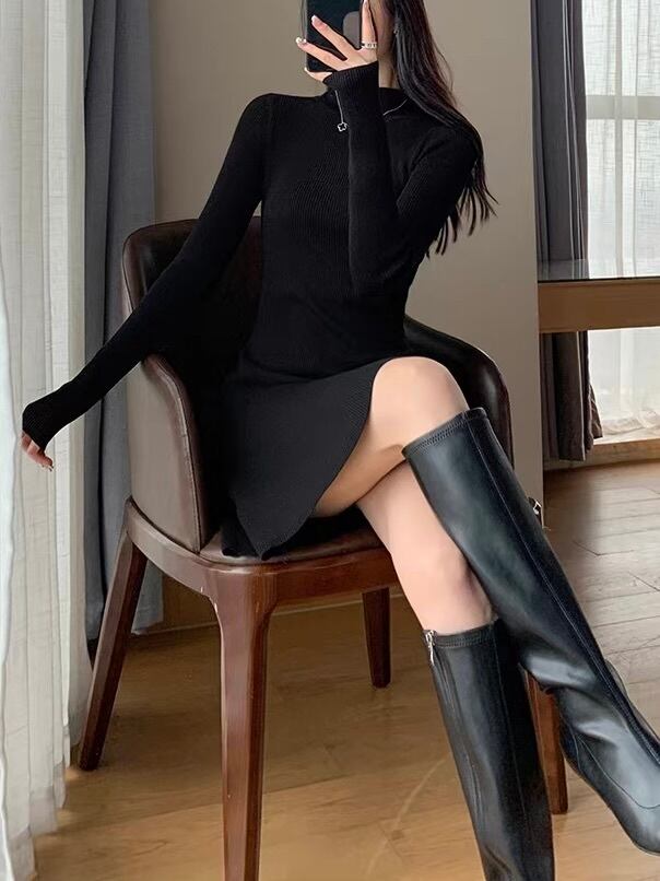シンプルだからこそ際立つ、 洗練された大人のためのニットワンピース。 首元を美しく見せる上品なハイネックと、身体のラインに沿う繊細なリブニットが、すっきりとしたシルエットを演出。縦のラインが自然にスタイルを整え、女性らしい美しいバランスへ導きます。 ウエストから裾にかけて優雅に広がるフレアシルエットが、動くたびに柔らかな揺れを生み、上品でフェミニンな印象に。コンパクトな丈感が軽やかさを添え、大人の可憐さを引き立てます。 落ち着きのあるブラックカラーは、シンプルながらも品格を感じさせる一着。 ブーツやヒールと合わせることで、洗練された大人のスタイルが完成します。 日常のお出かけからディナーシーンまで、 幅広いシーンで美しく映えるエレガントドレスです。 size:S 着丈82cm 袖丈61cm size:M 着丈84cm 袖丈63cm size:L 着丈86cm 袖丈65cm 生地成分:レーヨン72% ポリエステル28% ◾︎ 配送期間 約10〜21営業日お時間を頂戴しております。(土日・祝日を除く) ◾︎ 公式LINEお友達追加で¥1,000 OFFクーポンプレゼント https://lin.ee/F5Jw76G ◾︎ 必ず下記ページの「ご利用ガイド」をお読みの上 ご購入をお願いいたします。 https://riristore.official.ec/about